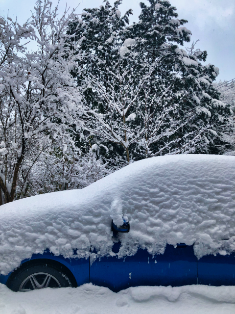 12/25に帰ってきたら、そこそこ積ってました。先週の落ち葉掃除がギリギリ間に合ってて良かった。