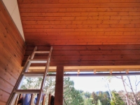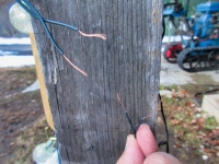 先日の積雪で切れてしまった、ガレージたたき支柱につけた電飾(2021/9取付)の配線の修理 |