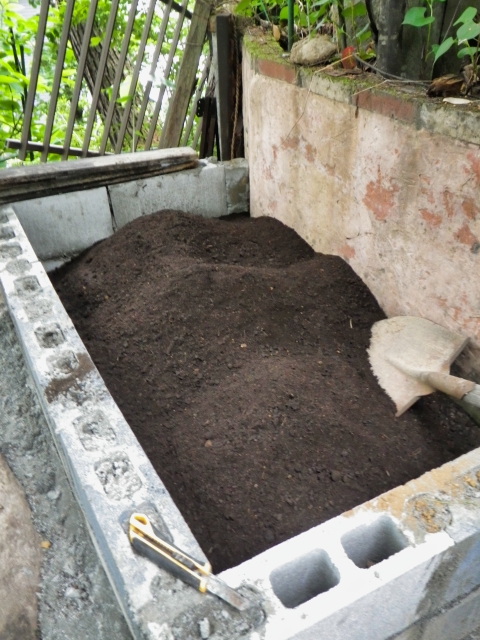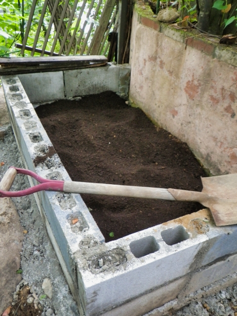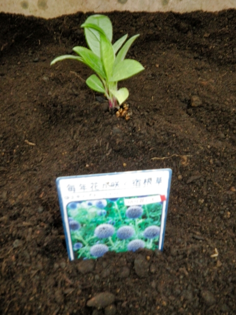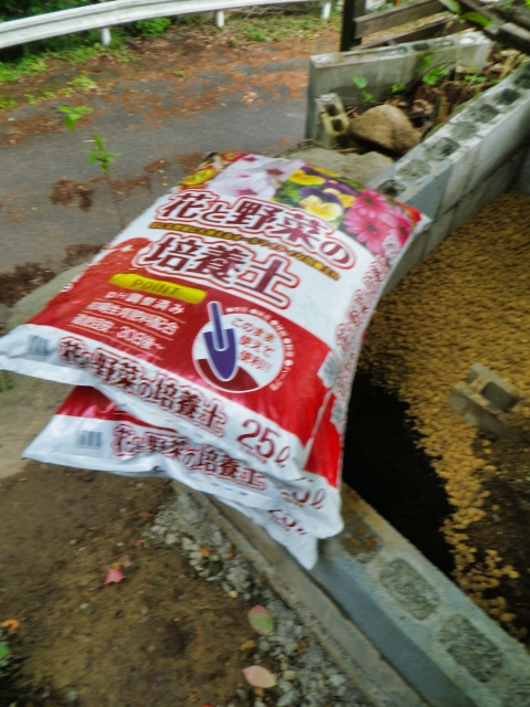 6/12:苗開梱して、旧デッキⅤ区の花壇の西側に土入れ
