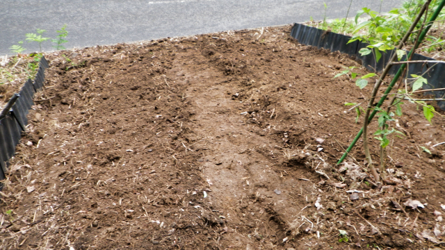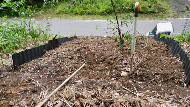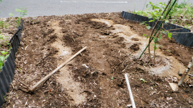6/15:外周西側の擁壁土手に通路と花壇作成day8