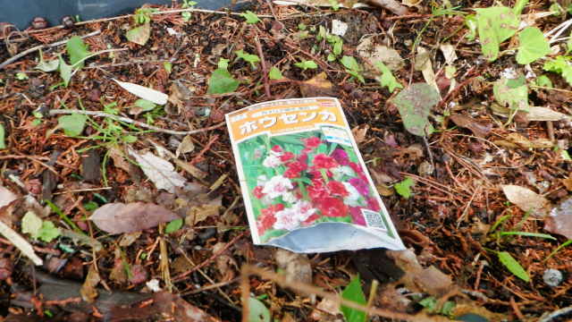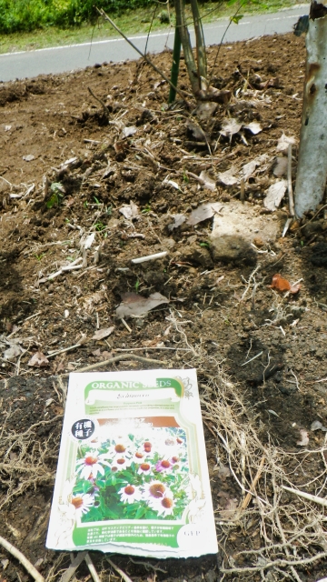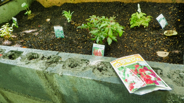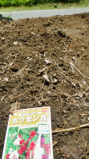 ホウセンカ カメリアがまだ5粒残ったので、旧デッキⅤ区の花壇にも蒔いた |