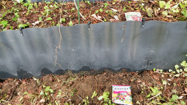 東側から順に縦一列づつ種まき。コキア (ほうき草)グリーン、