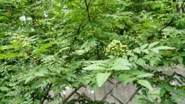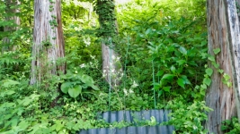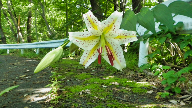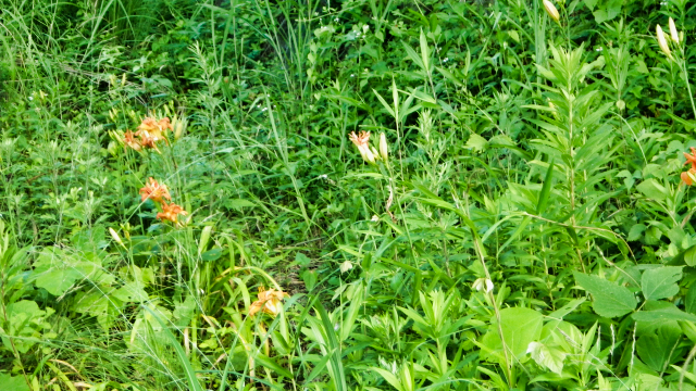 【7:35】南面下階段脇、ハクロニシキ脇のギボウシ