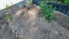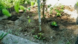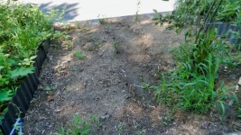 結局、外周西側の擁壁土手花壇は、唯一発芽したホウセンカの芽も無くなり全滅