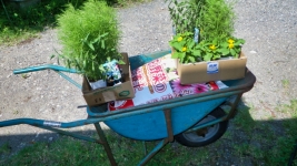 で、近所のホムセンで、コキア・メランポジウム・オキシベタラム ブルースターの3種の苗を購入し