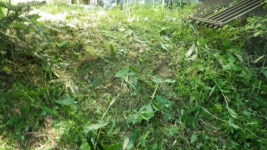 【11:22】刈り進んできたらサンショウに鳥の巣発見し本日はここで止めておく |