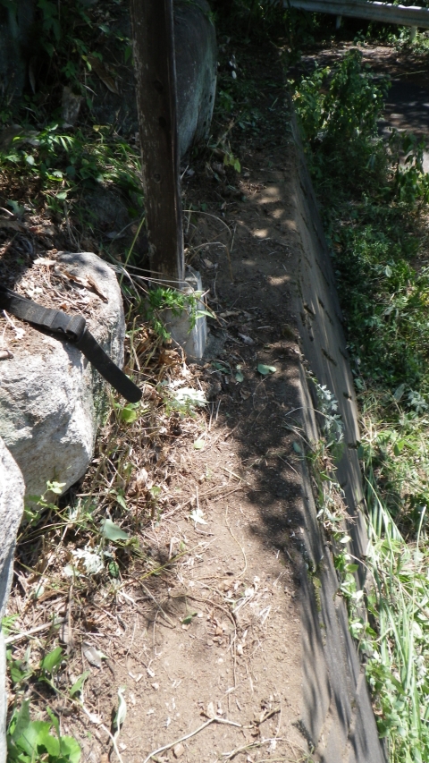 石垣なので、草刈り機は、刃からナイロンロープに交換
