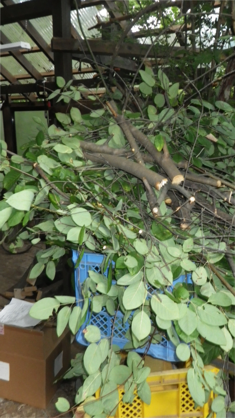 8/13:復活したシャインマスカットが日陰になるので、ジューンベリーを剪定