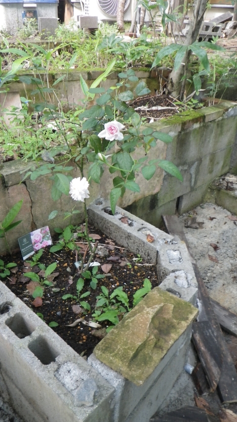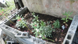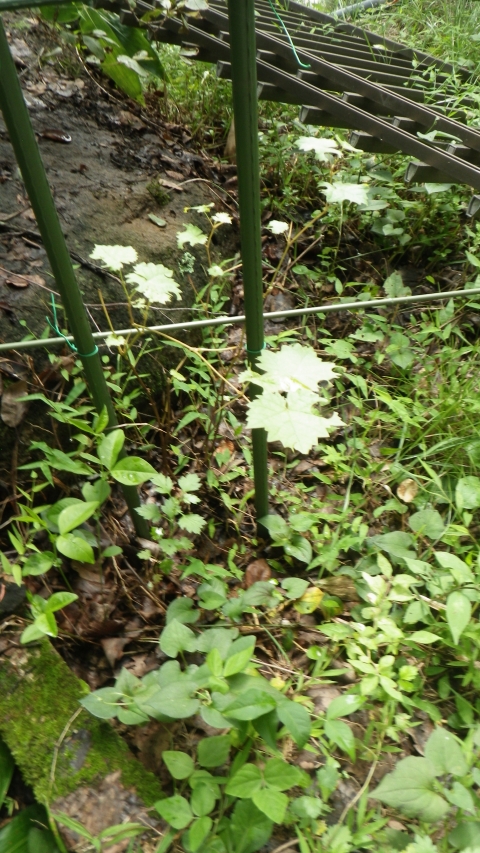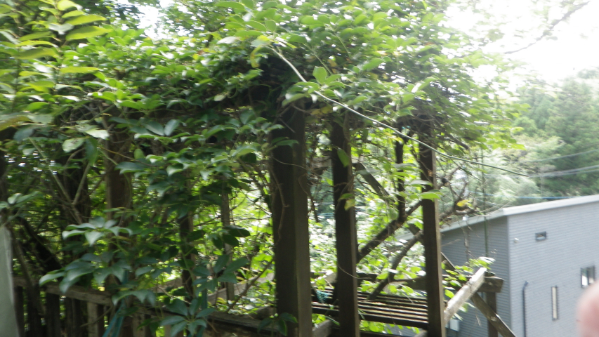 9/15:旧デッキ跡花壇と玄関前の大実ムベやザクロの様子