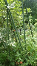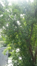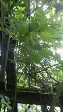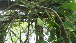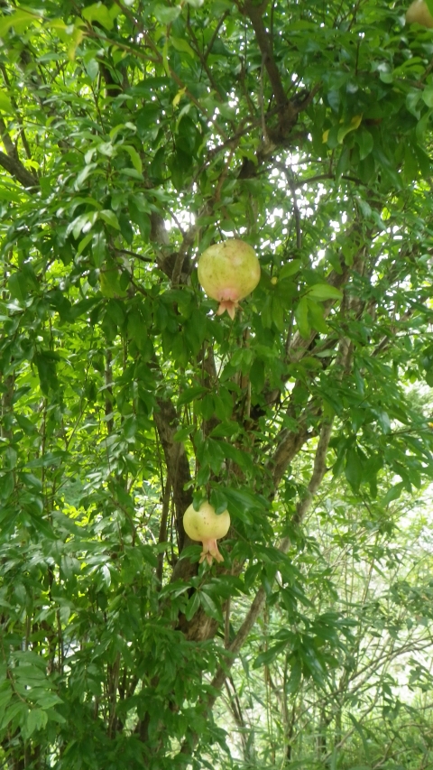 玄関前の桃パーゴラの大実ムベと今年は実成が良いザクロ