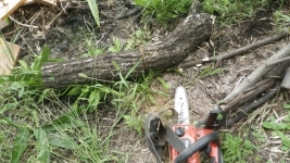 9/22:玄関前のザクロ下に放置してあった薪候補だった木材の片付けから