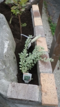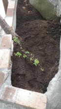 足りなかったプランター土を追加してから スモークツリーの反対側に、ユキヤナギを植える