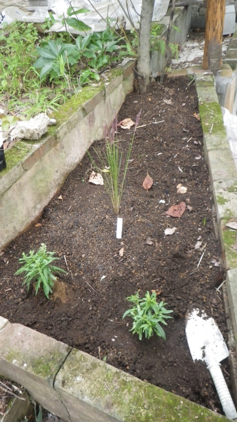 近くのホームセンターで買った宿根草植えて、秋捲きコスモス撒く |