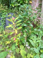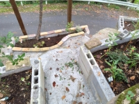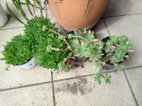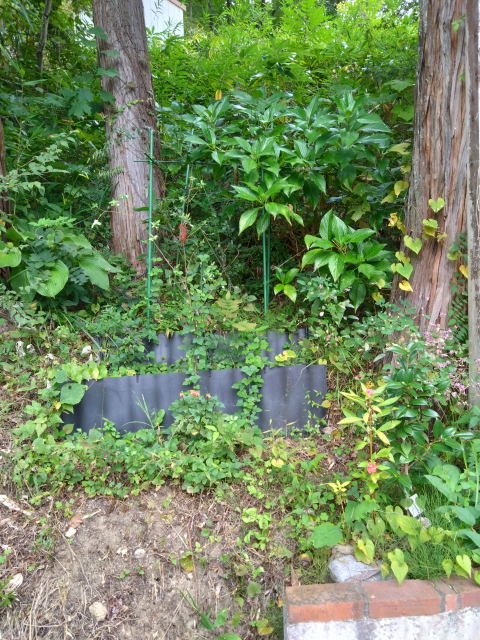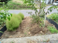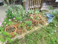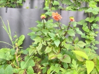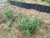 擁壁土手花壇、メランポジウムは枯れてしまったけどオキシベタラム ブルースターは健全