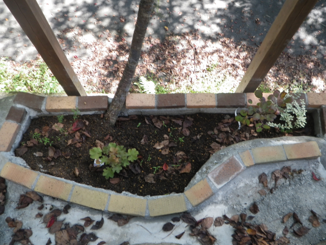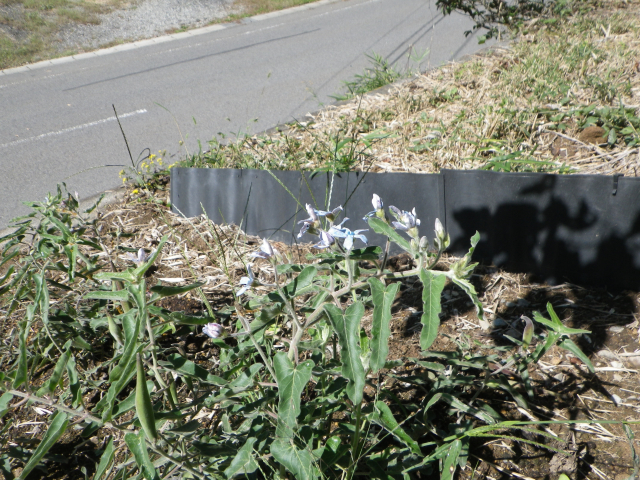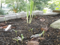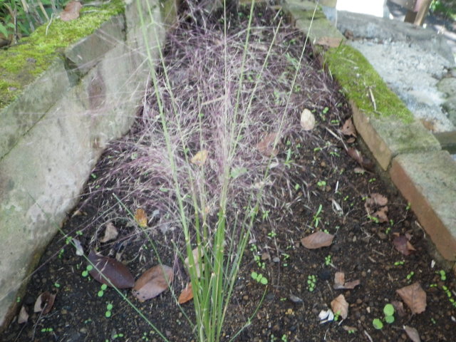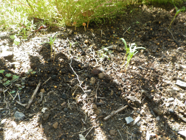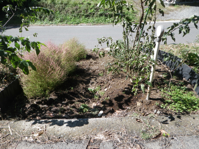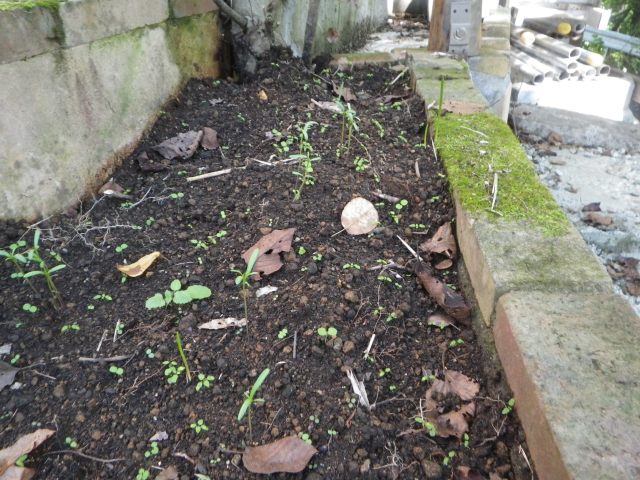| 【10:02】外周路西擁壁上花壇、コスモスの芽生えの様子等 |