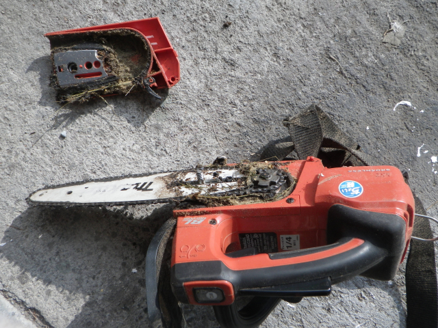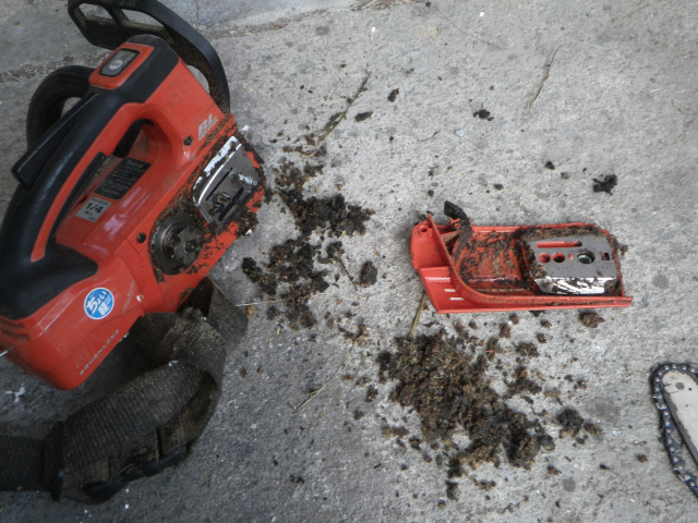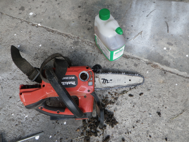 10/8:あちこちの花壇の様子、チェーンソーの刃の交換、ネコヤナギの伐採等