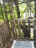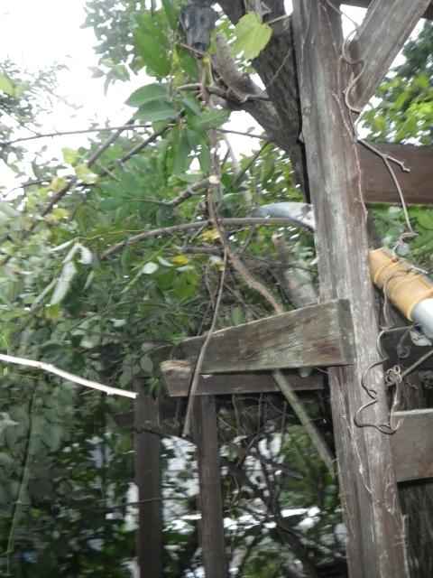手前のデッキも朽ちてて三脚立てられないので、足場敷いてから上を切る |