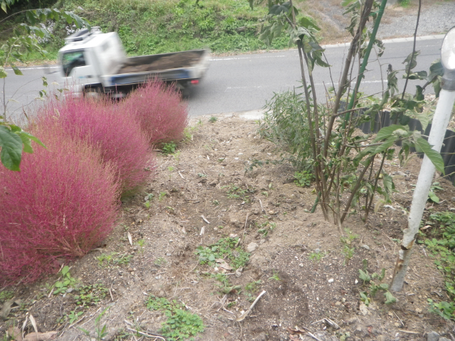 | 10/20【11:53】外周路西擁壁上花壇のホウキ草が紅葉 |