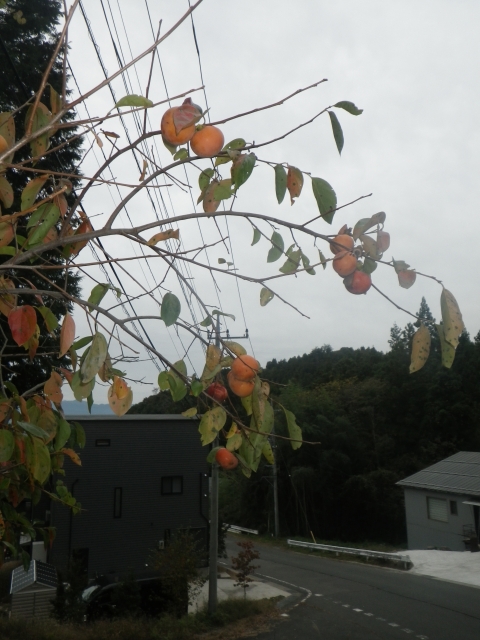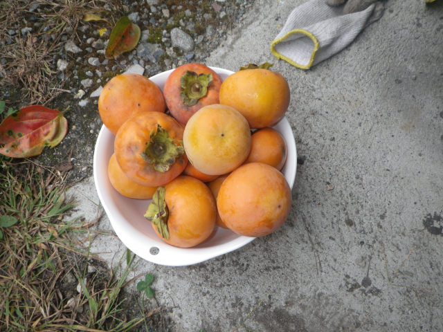 10/22:町から、熊対策で柿を収穫せよとのお達しで、柿収穫w