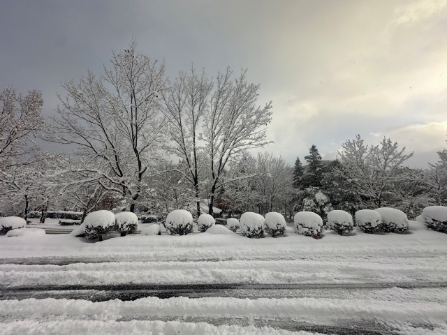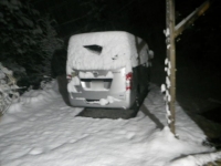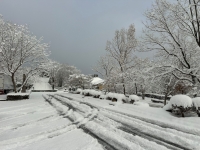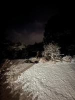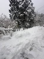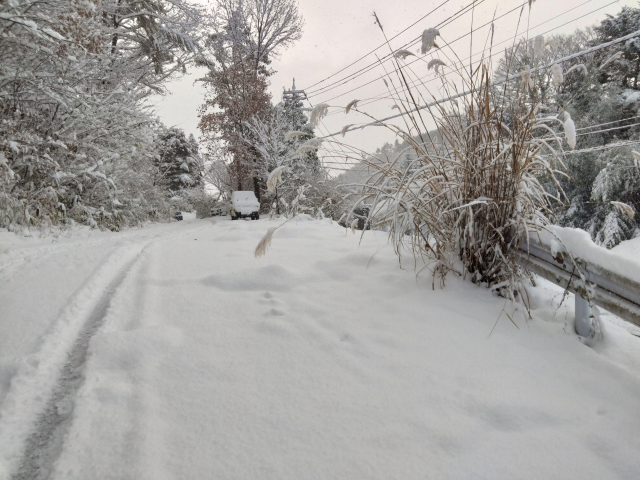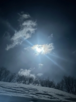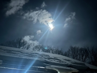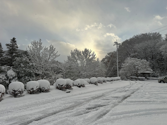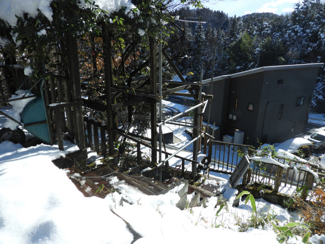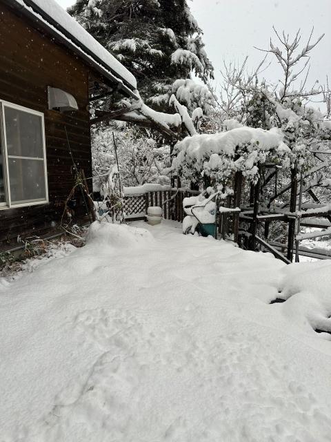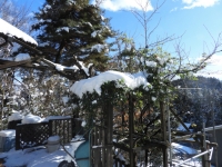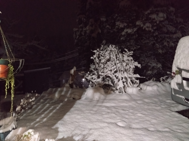 どこの山の雪景色?感ある、当家屋根越しの日の出w byママ