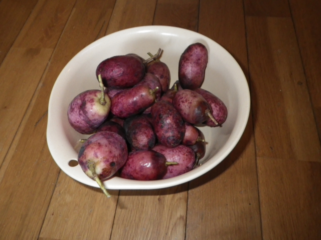 12/7:南面のデッキの再生工事で作業に邪魔な木の伐採のついでに、大実ムベの収穫