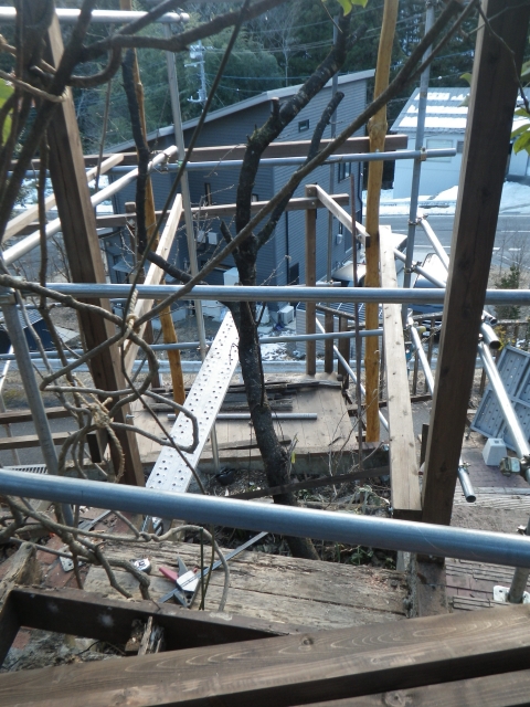 1/21~24:工事中の旧桃パーゴラのガーデニング。