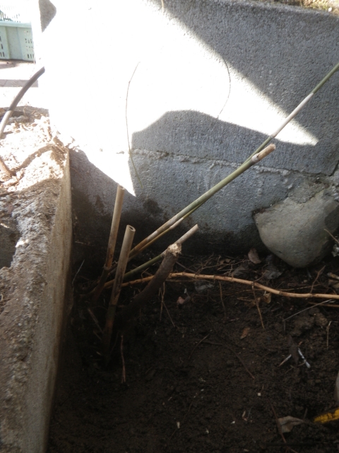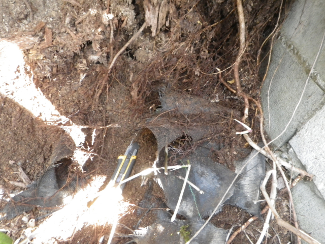 奥のムベの根を埋める |