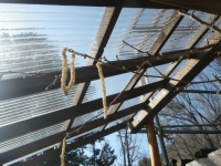 3/16:南面デッキの新ハウス内の既存のヘーゼルナッツの芽吹き |