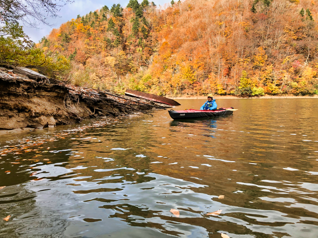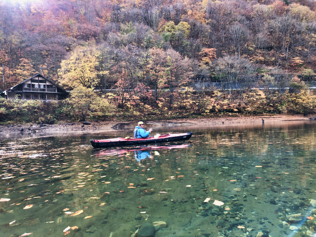 2019/11/12(火) ママは、ガイドのトレーニングで、紅葉の綺麗な奈良俣湖でカヌー