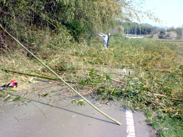 俺は、ナタと草刈機持参したんだけど、俺の持ってるナタは竹裂き用の小ぶりの奴なんで、ちょっと役不足。