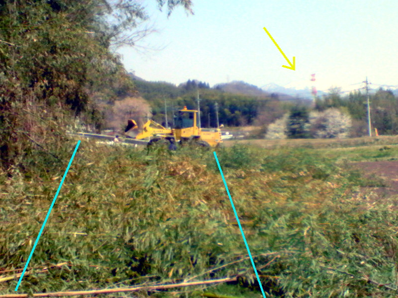 伐採した竹で埋まっちゃってるけど、青線が道路。 |