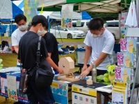 指示に従い宝台樹スキー場の駐車場に留めて、シャトルバスで湖畔の会場へ