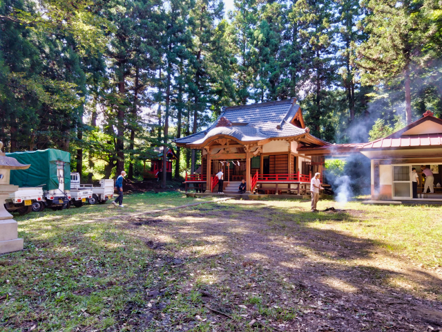 俺は、地区の「若衆頭」って役で、朝の旗立て〜昼前の清掃・準備〜神事〜片付け〜旗降ろし。