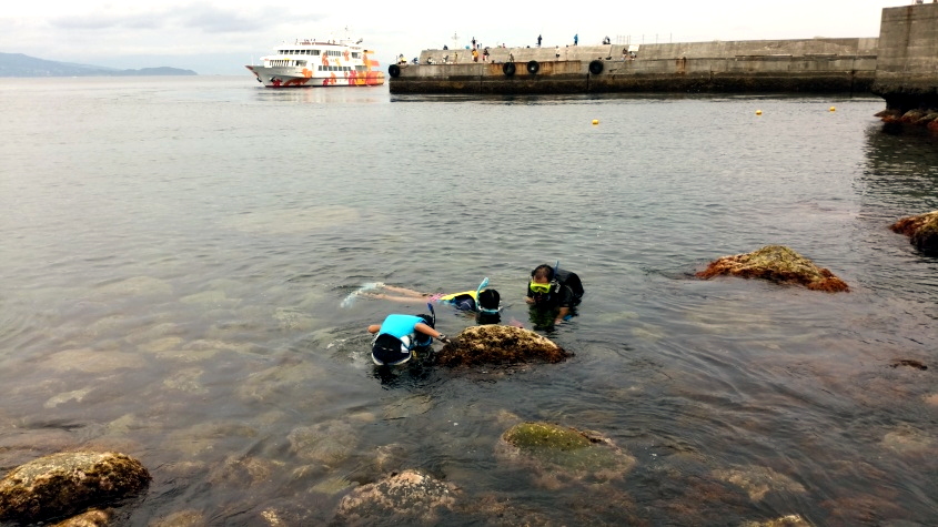 まずは、シュノーケリングセンター目前のポイントの「第一漁港」で遊ぶ