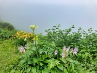 朝イチはけっこうな雨でしたが、山頂への天空階段では青空が......」