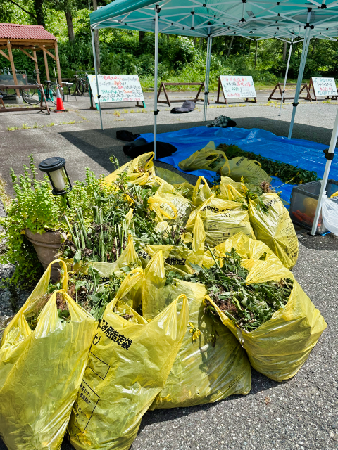 明治以降に観賞用として持ち込まれ、日本全国のほぼ全域に拡大し、谷川岳の麓の道路や白毛門登山口に群生している、環境省指定特定外来生物「オオハンゴンソウ」