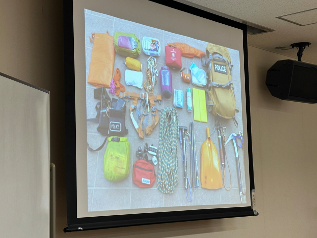 「岳連登山指導員の研修で、群馬県警 谷川岳山岳警備隊の元隊長さんによる遭難対策研修でした。