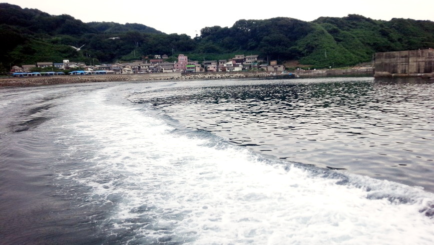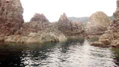 この後、ランチして、観光船 シーバード で島半周[釜谷発14:15 → 14:50 内浦着] |