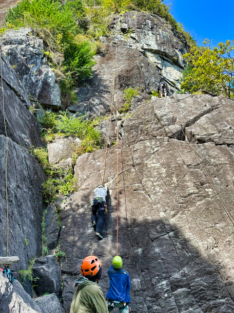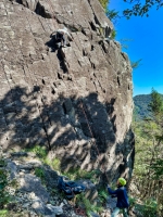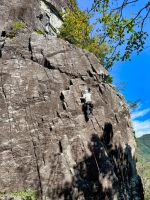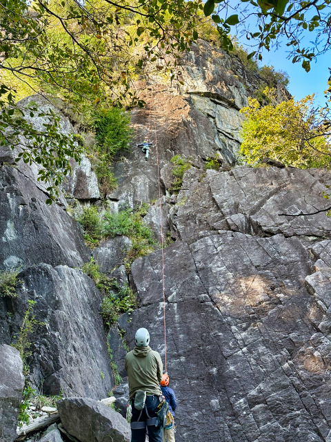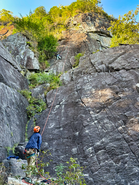 2023/10/6 ママは子持山の黒岩でロッククライミングの練習。