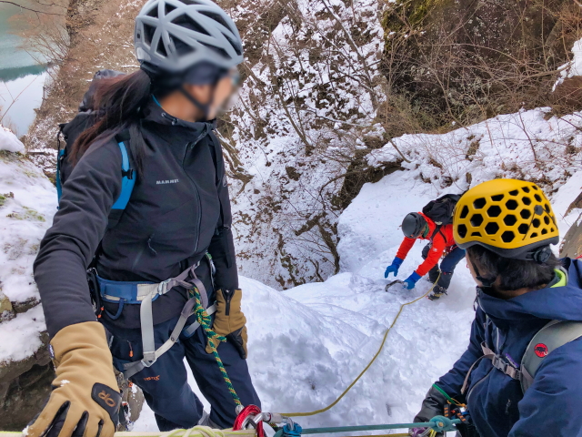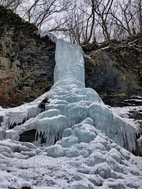 巨大な氷瀑にカリフラーは登りごたえがありました??」