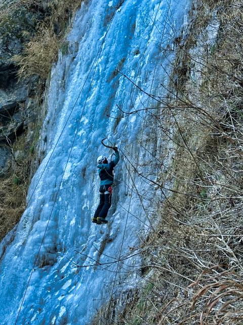 「某所でのアイスクライミング。
