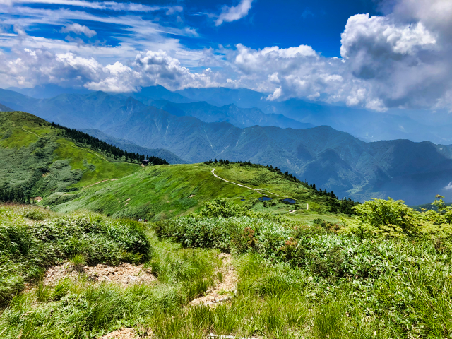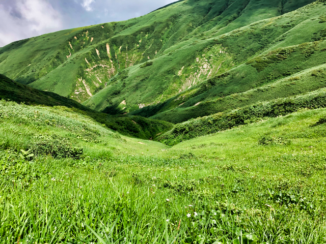 今日も草原と笹原が広がるそれはそれは美しい稜線でした。」