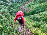 沢では晴れ、稜線出たら予報通り爆風、先日残っていた巨大スノーブリッジは無くなってました。良かった〜〜」