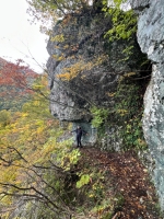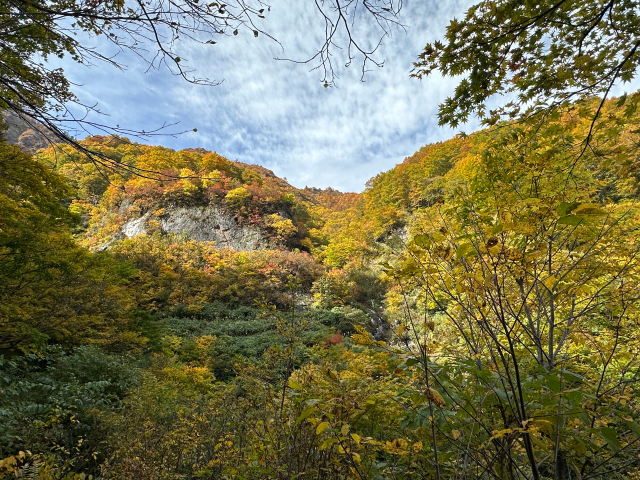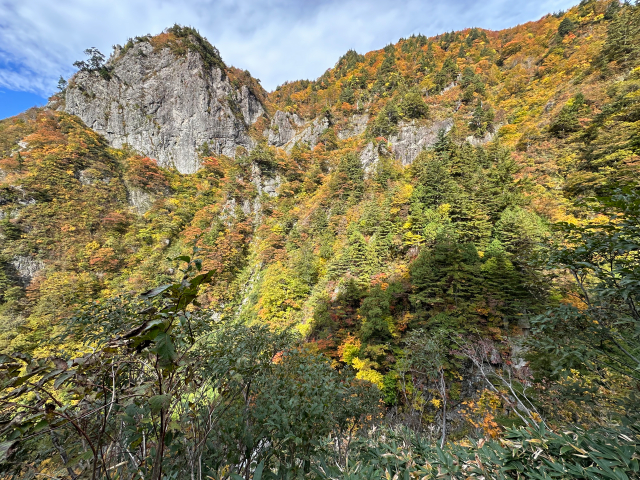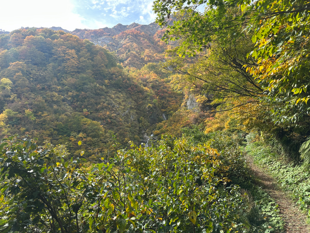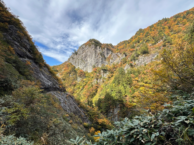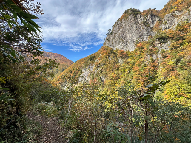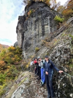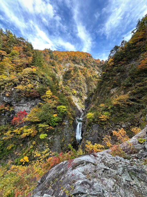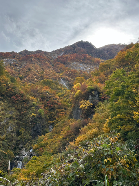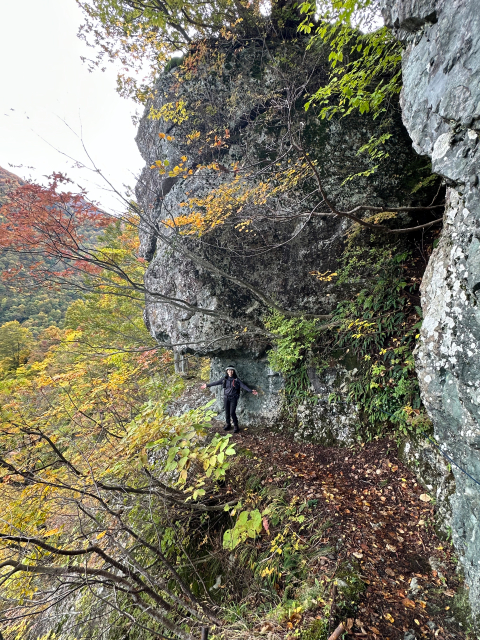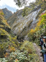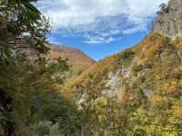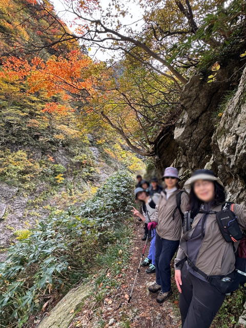 | 2025/11/2 ママはガイドで裏巻機山へ。 「今日は皆さんと、越後の下ノ廊下「裏巻機山」に行ってきました。 このルートは、昭和初期に発電所の水源確保の為に完成した断崖絶壁の登山道で、距離が短いながらも、岩壁がくり抜かれた水平歩道や数々の滝、花崗岩を滑らかに流れる五十沢、美しく侵食された巨大ゴルジュなど見どころ盛り沢山。 自然って、すごいと感じられる場所ですが、更に今日は、錦の紅葉に彩られ、それはそれは、圧巻の渓谷美でした。 今回も奇跡的にお客様少なめで、ゆったりと楽しむことが出来ました。」 |