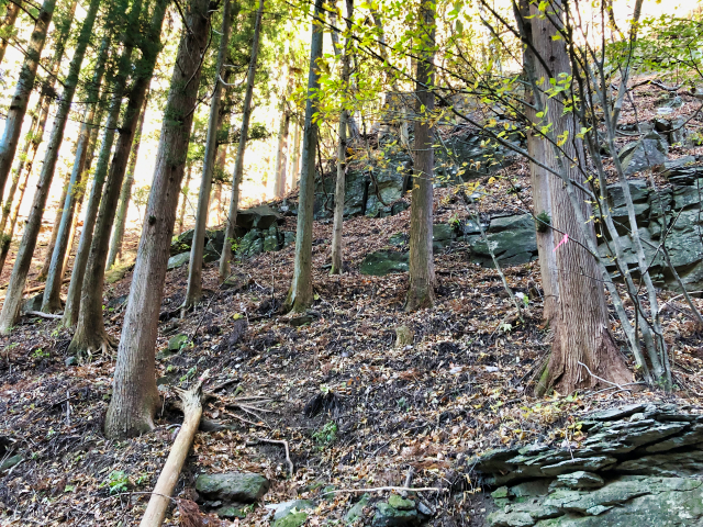 落ち葉と瓦状の石が積み重なっている急登や宝物が隠されていると言われているメンベ岩などなど。