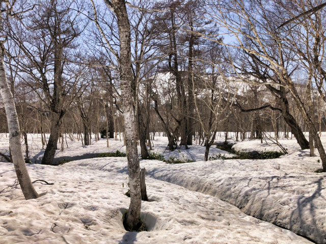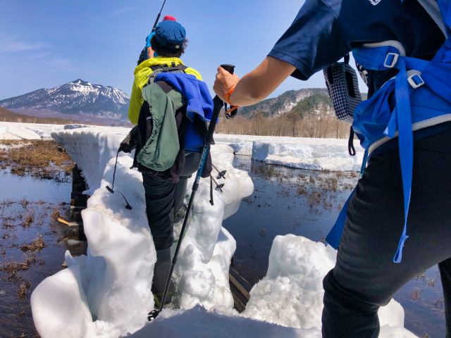 | 2022/4/25 ママはガイドの下見で尾瀬へ、帰りに花咲く地区の「天王桜」へ 「今日はガイド達と尾瀬ヶ原下見へ。昨日は上から、今日は下から。 今日は一転、夏日のような暑〜い1日でした。 尾瀬ヶ原も雪がたっぷり。 でも拠水林の川上川を渡ったら木道がヤバいことに・・・ 雪がブロック状に崩れ始めているし、木道間は空中だし、かなりスリリング(笑) 帰りに花咲く地区の「天王桜」へ今日は「逆さ至仏」「逆さ燧」〆に「逆さ天王桜」を楽しみました。」 |