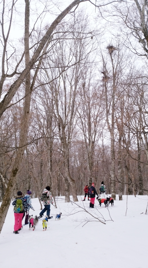 2019/2/27(水)ママ が行った玉原のワンちゃんとのスノーシューツアーのガイドの様子