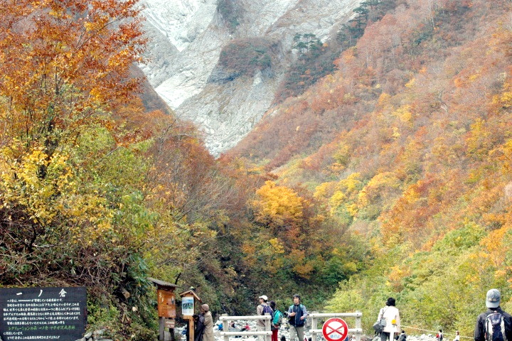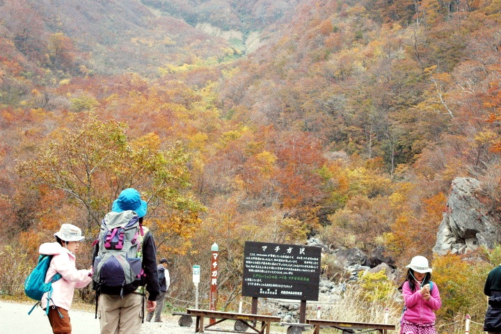 ママ x2 & 子供3人で、谷川岳の一ノ倉沢のPまで紅葉ハイキング。