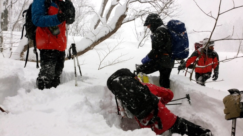 2017/1/16の谷川岳。ガイドのスノーシュートレーニングの様子。