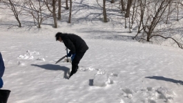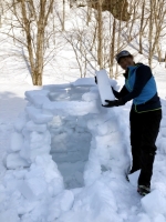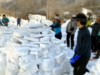 2022/3/12 「白毛門の麓で、ピングーのお家作り講習会。欲張って大豪邸にしたのが良くなかったのか、屋根が繋がらず、結局、山岳会の大先輩に手伝ってもらう始末。棟上げをして、まもなく完成という時に屋根崩落。